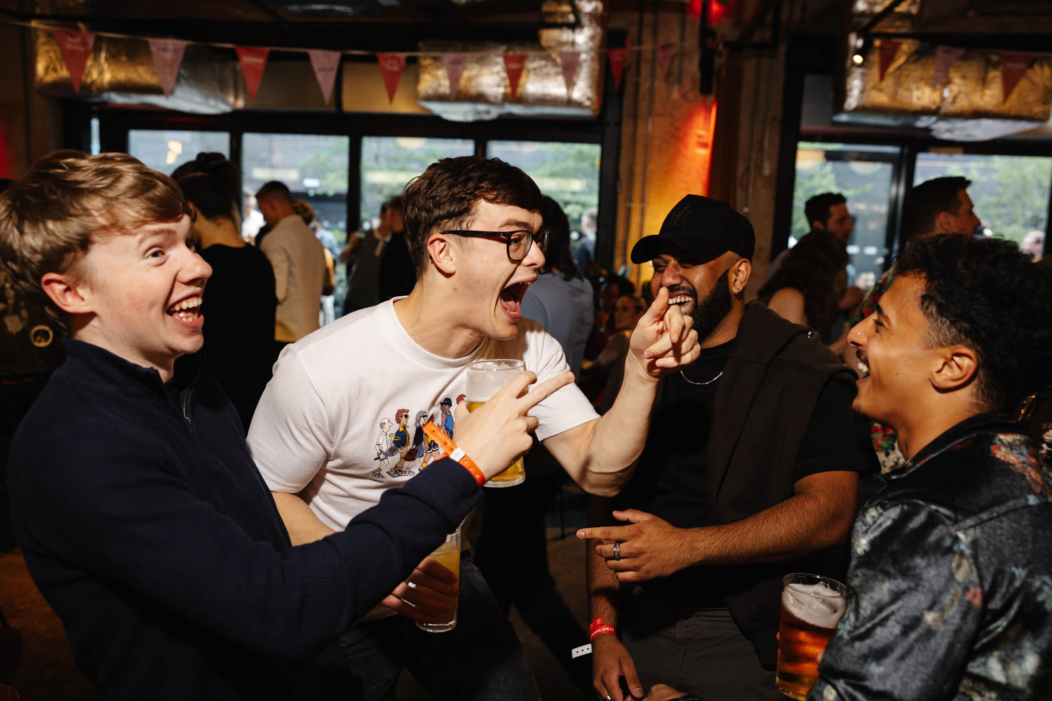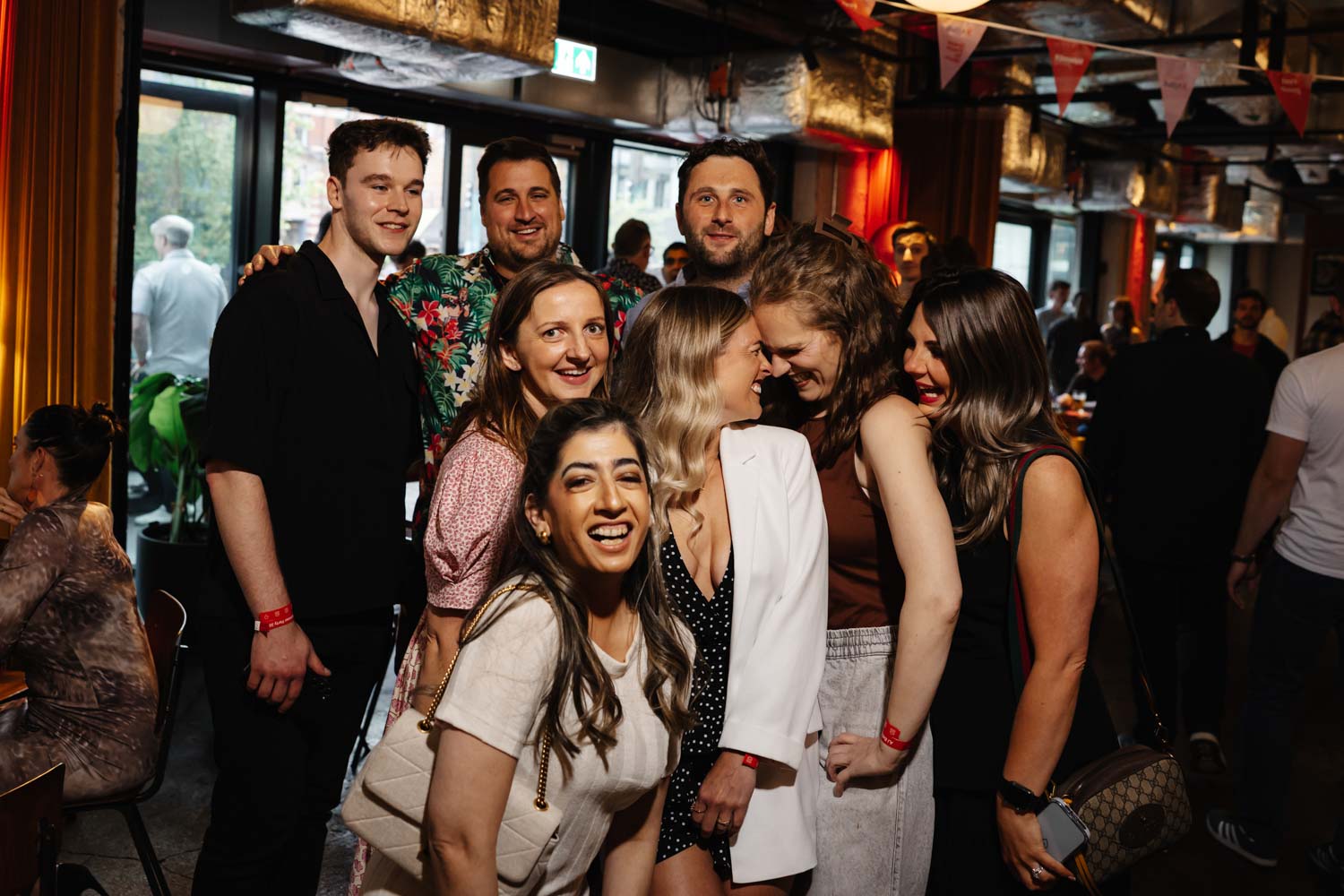 Outside, the terrace quickly filled with guests enjoying drinks in the sunshine. Inside, the evening moved into full party mode with live music filling the room and a packed dance floor. These moments are exactly why Event Photographers Manchester love corporate celebrations. From candid laughter to energetic performances, every frame tells part of the story.