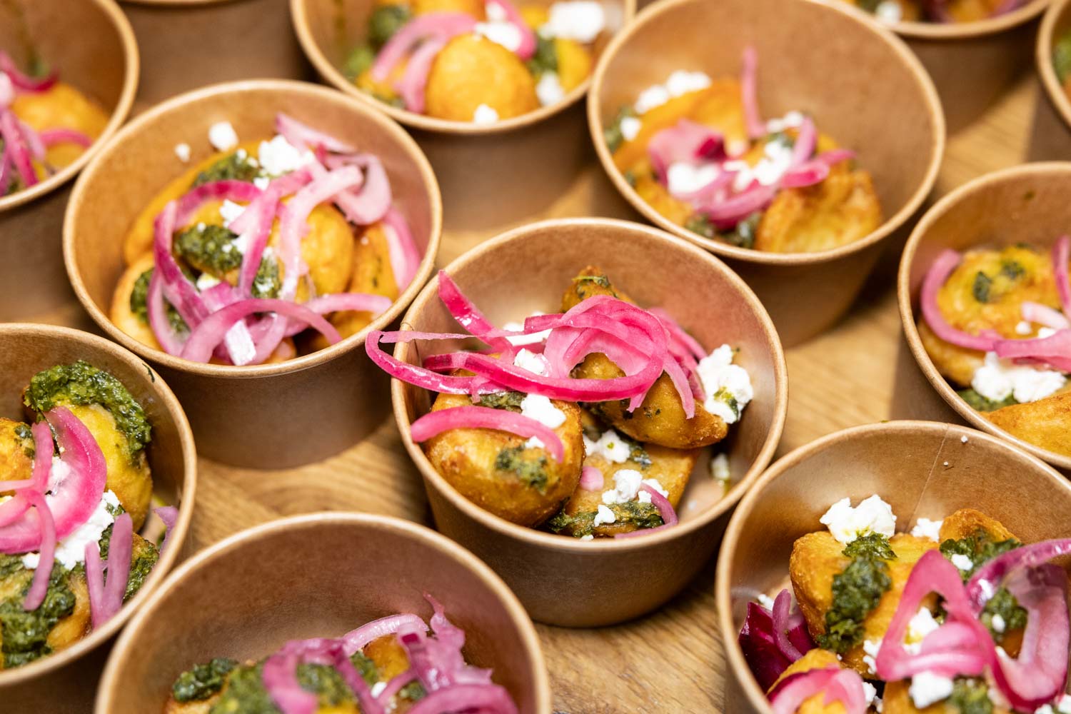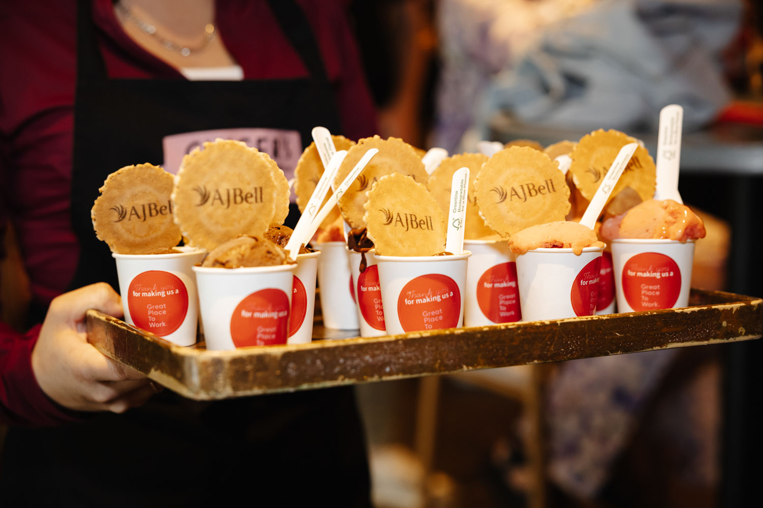 The food offering was just as impressive as the decor. Guests enjoyed a variety of creative street-style dishes served in stylish small bowls, alongside sweet treats that featured the AJ Bell branding. From colourful savoury bites to delicious desserts, the catering added another layer to the experience and made for some brilliant detail photography.