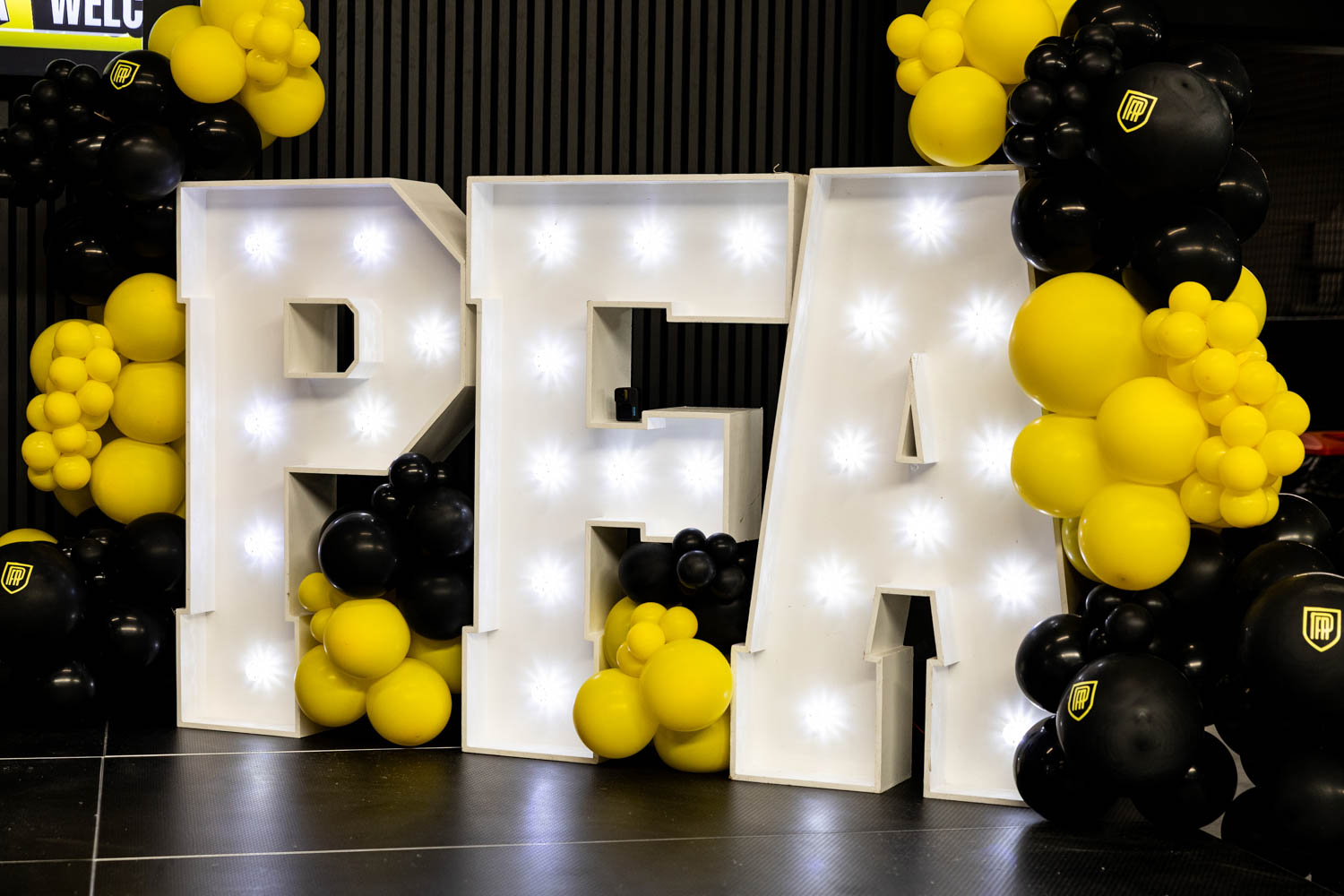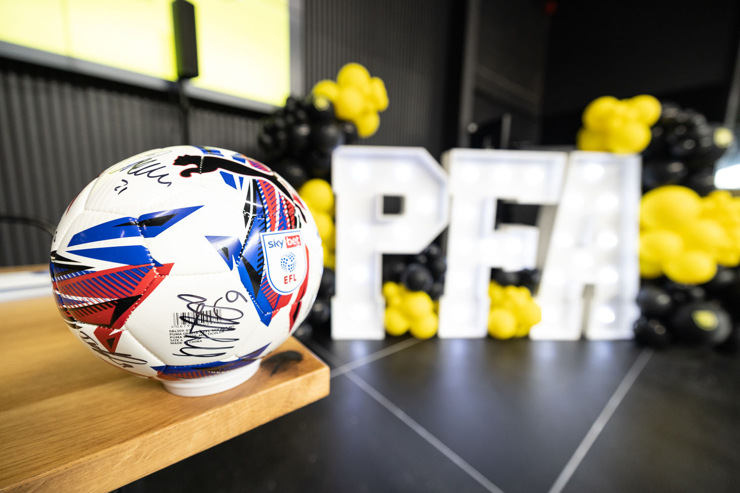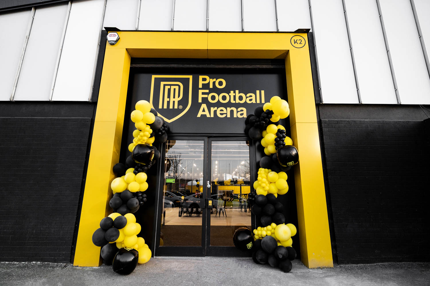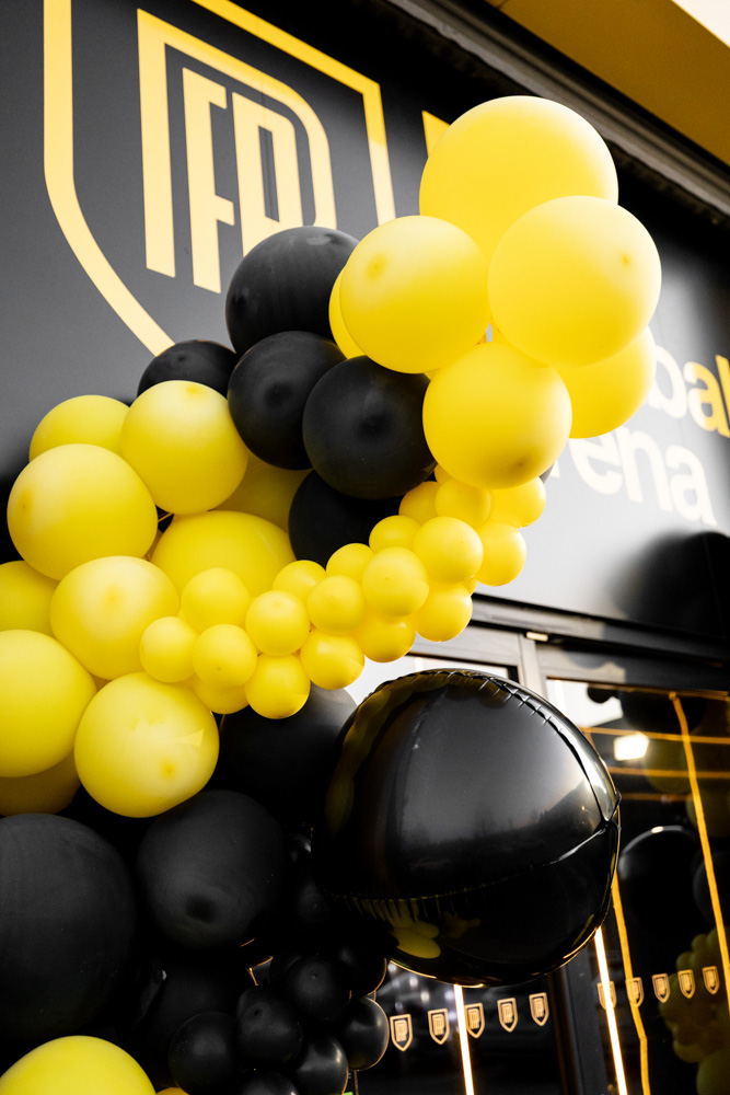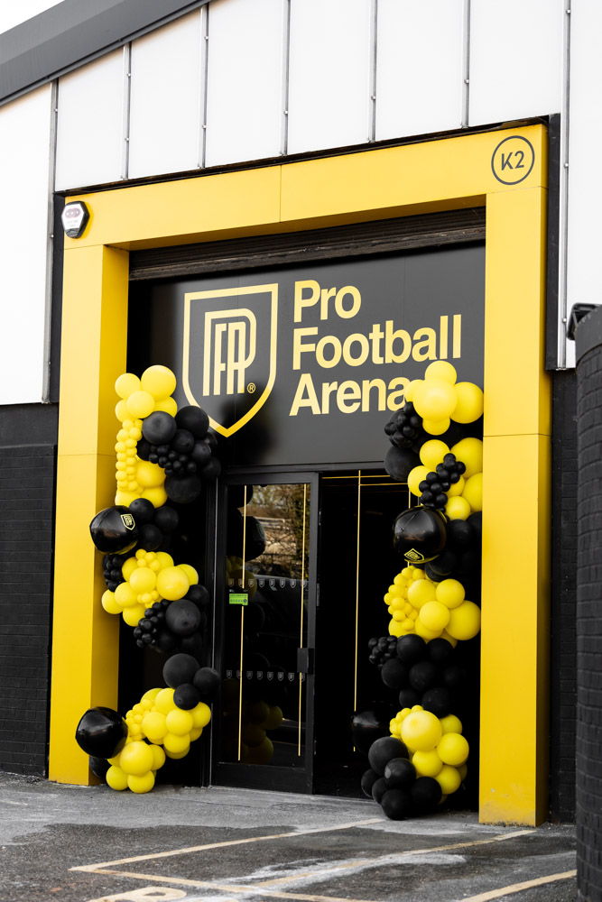 Guests arriving at the arena were greeted by a striking entrance framed with black and yellow balloons, setting the tone for the celebrations inside. The bold Pro Football Arena branding made the entrance feel like a proper matchday arrival.