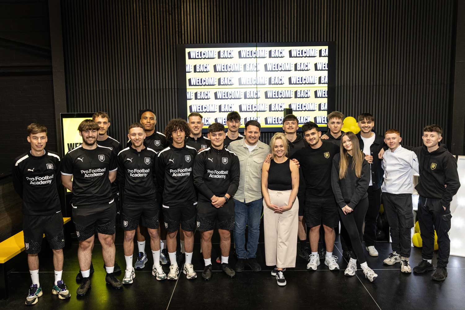 A big part of the launch was celebrating the people behind Pro Football Arena. The team, coaches, and academy players gathered together for group photos in front of the welcome backdrop, marking the start of a new era for the venue.